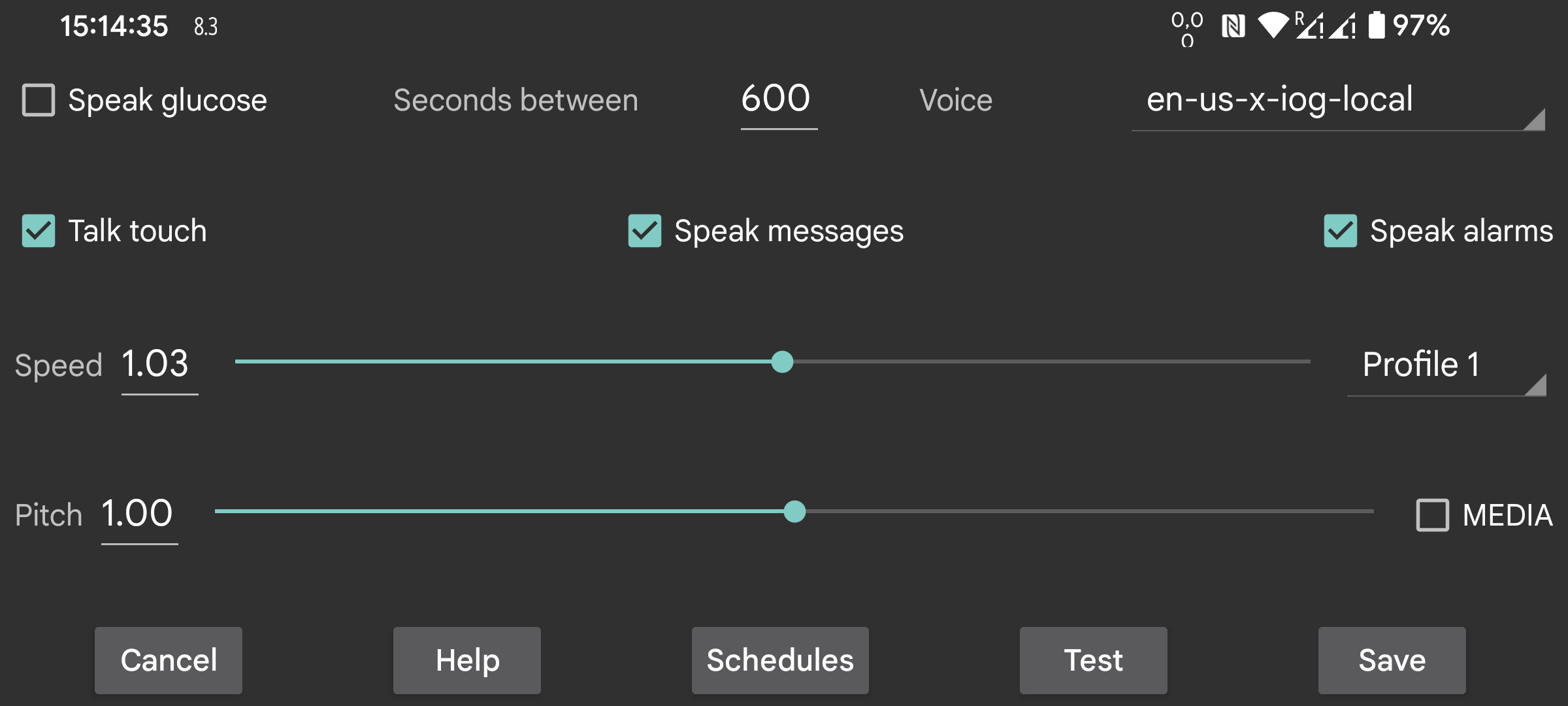 Speaks glucose values when they arrive.