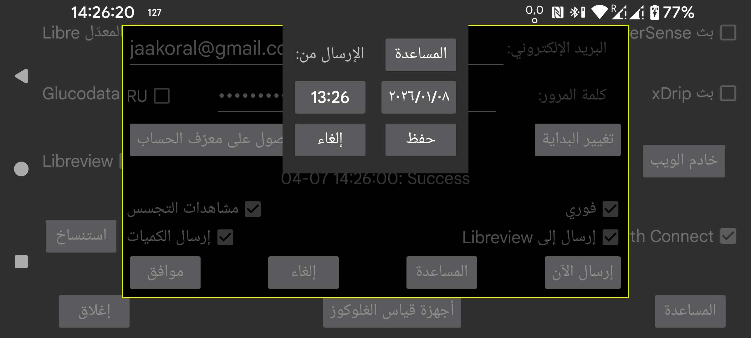 يغيّر هذا الخيار التاريخ والوقت اللذين تبدأ منهما البيانات المرسلة إلى Libreview.