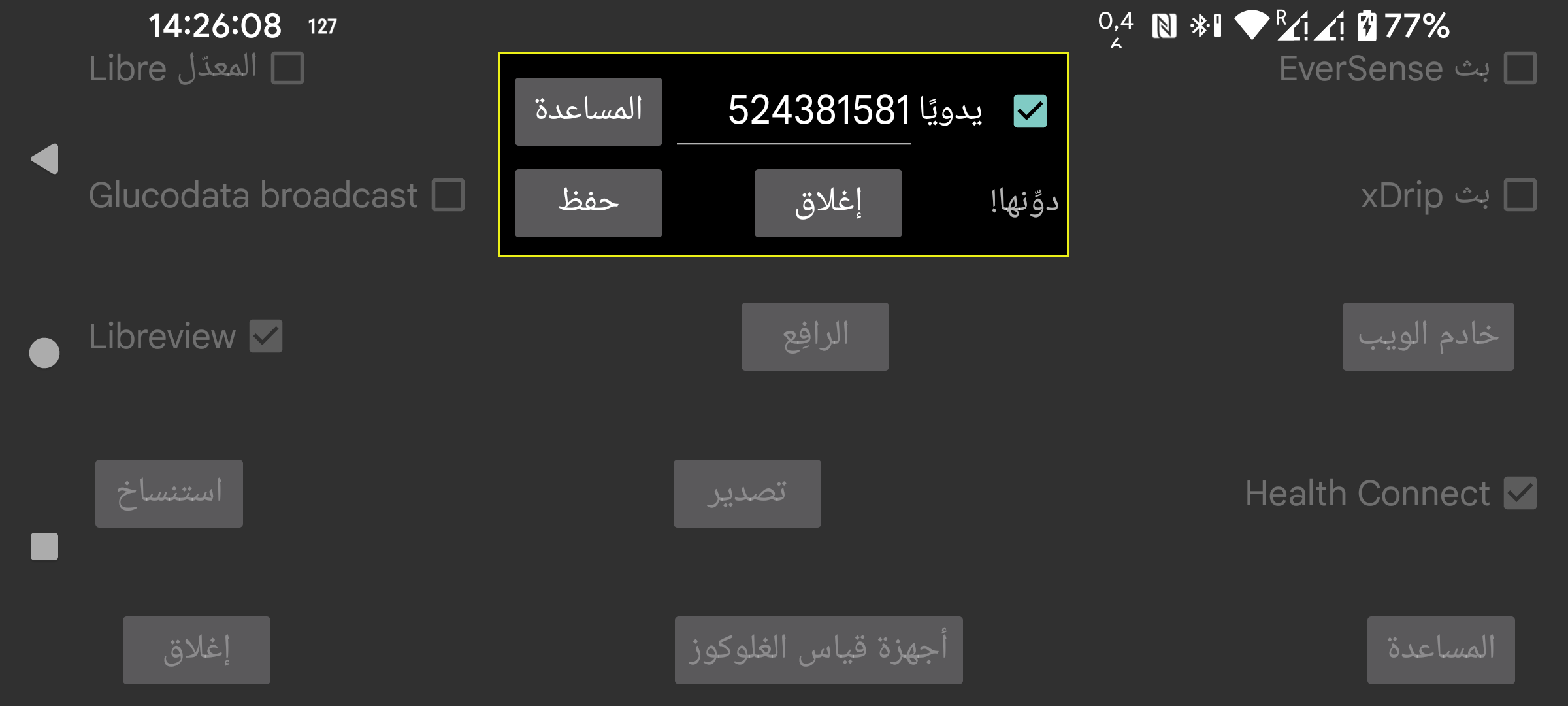 كيف تحصل على معرّف حساب Libreview اللازم لمسح مستشعر Freestyle Libre 3 عبر NFC؟ إذا حددت «يدوياً»، فيمكنك إدخال معرّف الحساب يدوياً. كما يمكنك إلغاء تحديد «يدوياً» والضغط على «من Libreview» لاستخدام بريدك الإلكتروني وكلمة مرورك في Libreview للحصول عليه من Libreview.