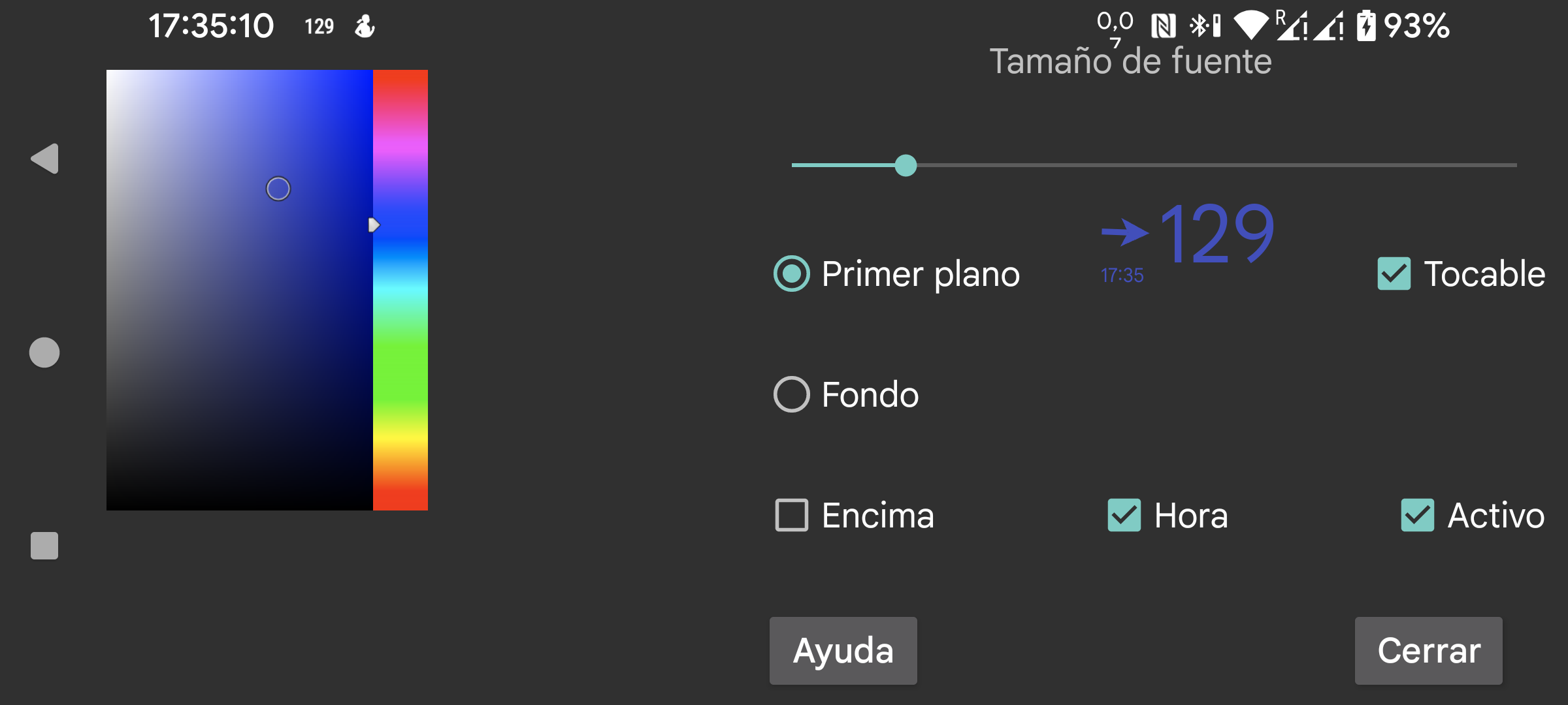 Aquí puedes ajustar el tamaño de letra y los colores de primer plano y fondo de la glucosa flotante. También puedes poner el fondo en Transparente, con lo que quedará invisible.