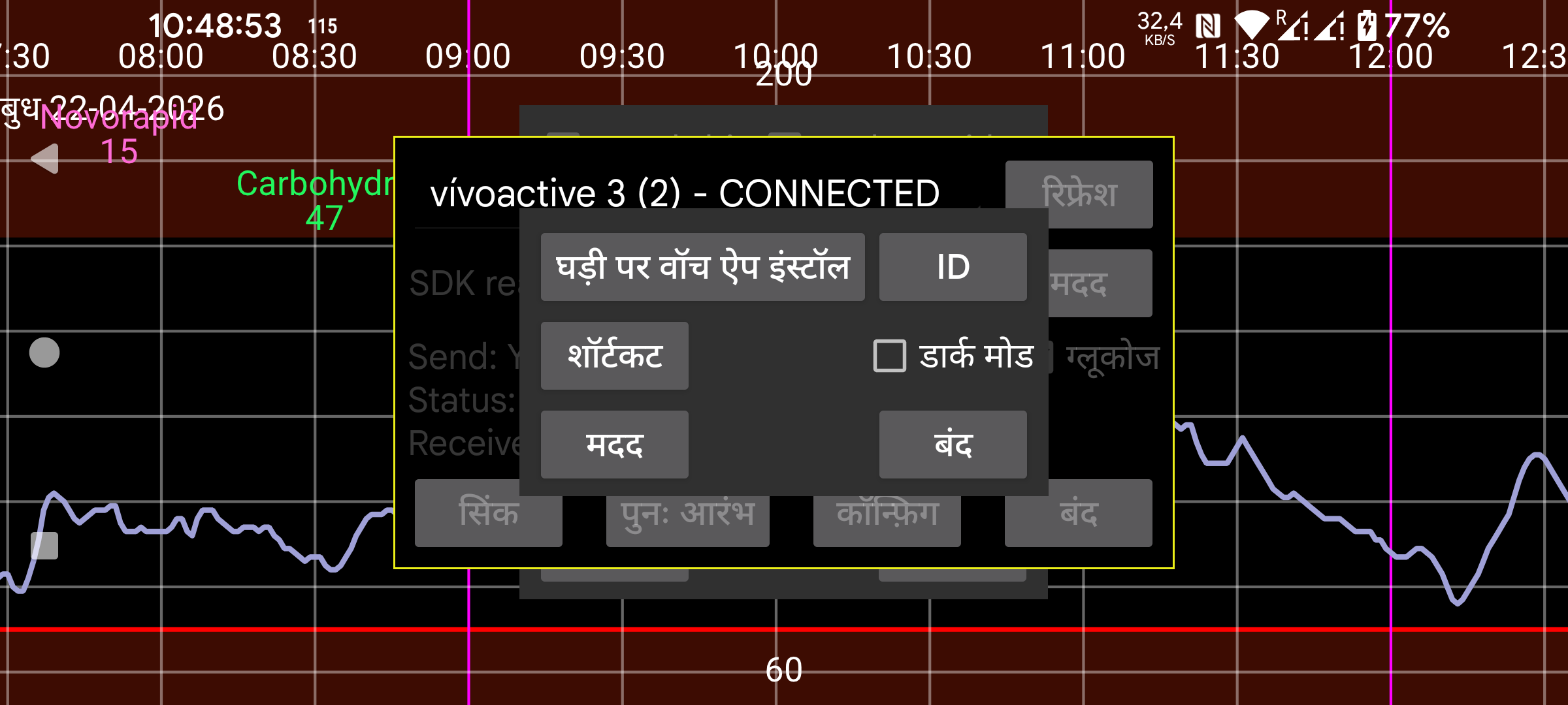 कुछ मान आसानी से डालने के लिए शॉर्टकट Garmin वॉच ऐप Kerfstok को भेजे जाते हैं।
