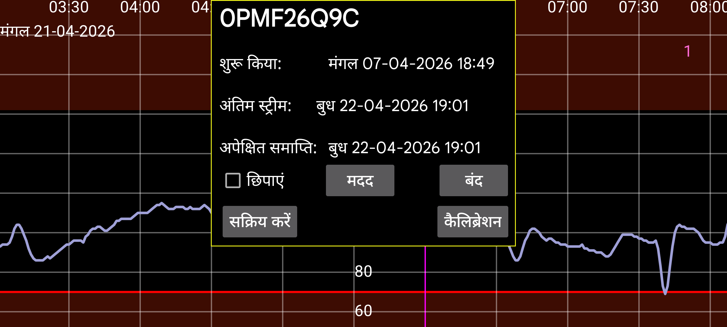 वार्मअप: Sibionics और Linx/Aidex X सेंसरों के लिए आप वार्मअप अवधि के मिनटों की संख्या बदल सकते हैं। सभी फंक्शन वार्मअप अवधि के दौरान डेटा को अनदेखा करेंगे: स्क्रीन पर वक्र, आंकड़े, एक्सपोर्ट किया गया डेटा और वेब सर्वर में दिखाई देने वाला डेटा। साथ ही, पिछले समय के लिए भी।