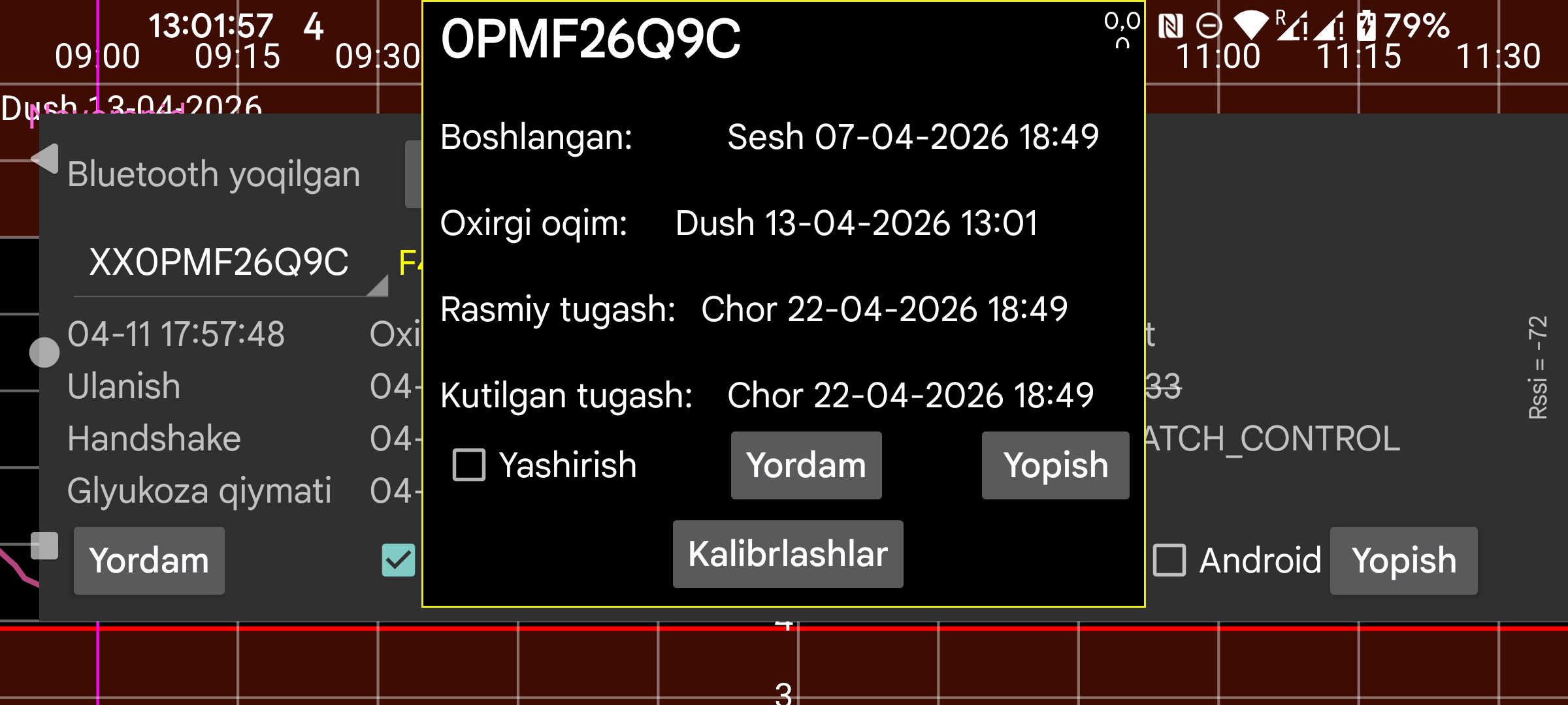Qizish: Sibionics va Aidex X sensorlari uchun qizish davri necha daqiqa bo‘lishini o‘zgartirishingiz mumkin. Qizish davrida barcha funksiyalar ma’lumotni e’tiborsiz qoldiradi: ekrandagi egri chiziq, statistika, eksport qilingan ma’lumot va veb serverda ko‘rinadigan ma’lumot. Bu o‘tgan ma’lumotlarga ham tatbiq etiladi.